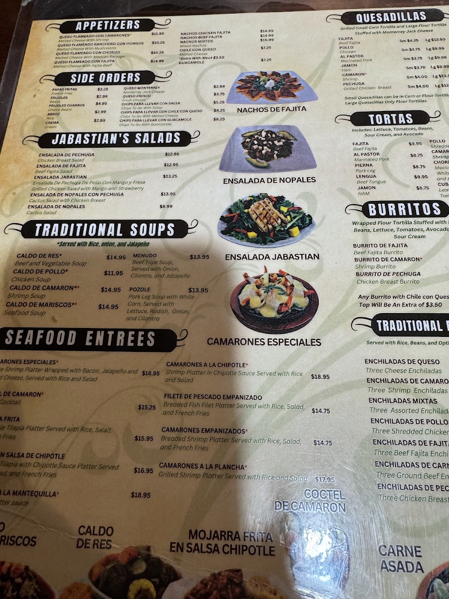 Introducing Jabastian's Mexican Restaurant, a vibrant culinary gem nestled in Houston's bustling Gessner Road. Here, the essence of authentic Mexican cuisine shines through a carefully curated menu. Dive into their mouth-watering parrilladas, where combinations like beef fajitas, chicken breast, and succulent shrimp create a feast for the senses, all served with classic sides of arroz and frijoles. A must-try is the renowned pozole, often hailed as the best in the city. Indulge your sweet tooth with a slice of the delightful Pastel De 3 Leches, a heavenly dessert for just $5.99. With commendations for excellent service and a 24-hour operation, Jabastian’s is perfect for both night owls and those craving late-night tacos. The warm atmosphere and genuine flavors leave a lasting impression, making every visit an unforgettable culinary adventure.